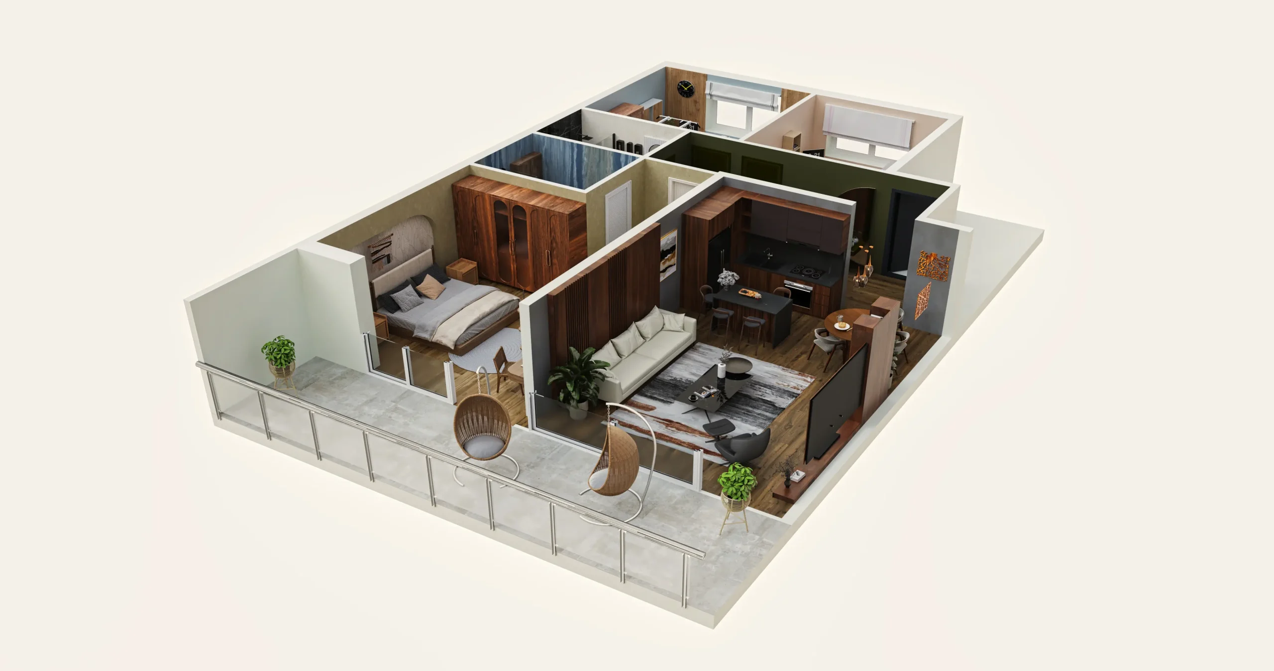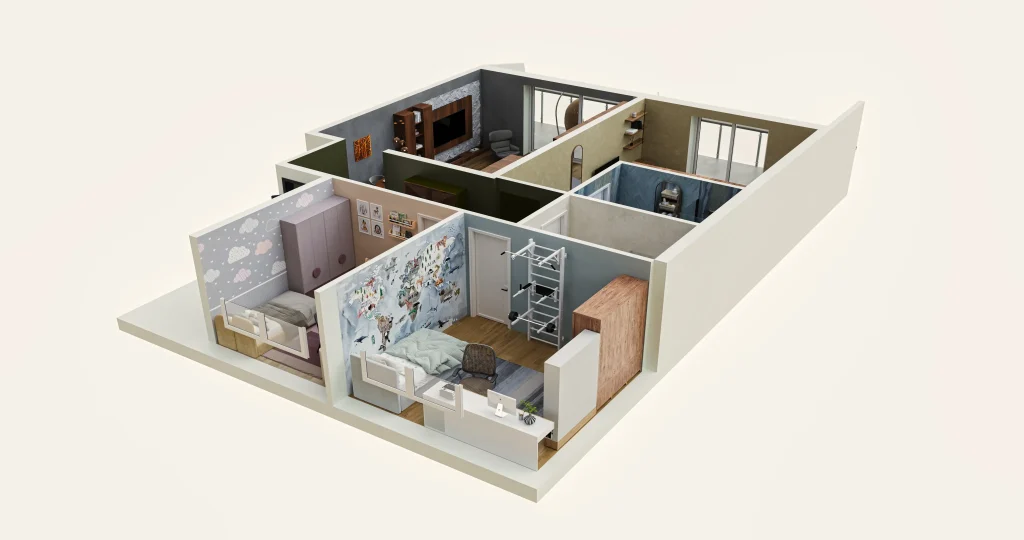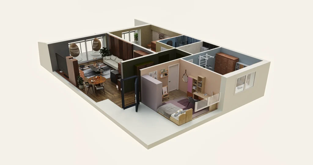 İnteraktiv 3D Planlaşdırma Isometric Apartment Interiors