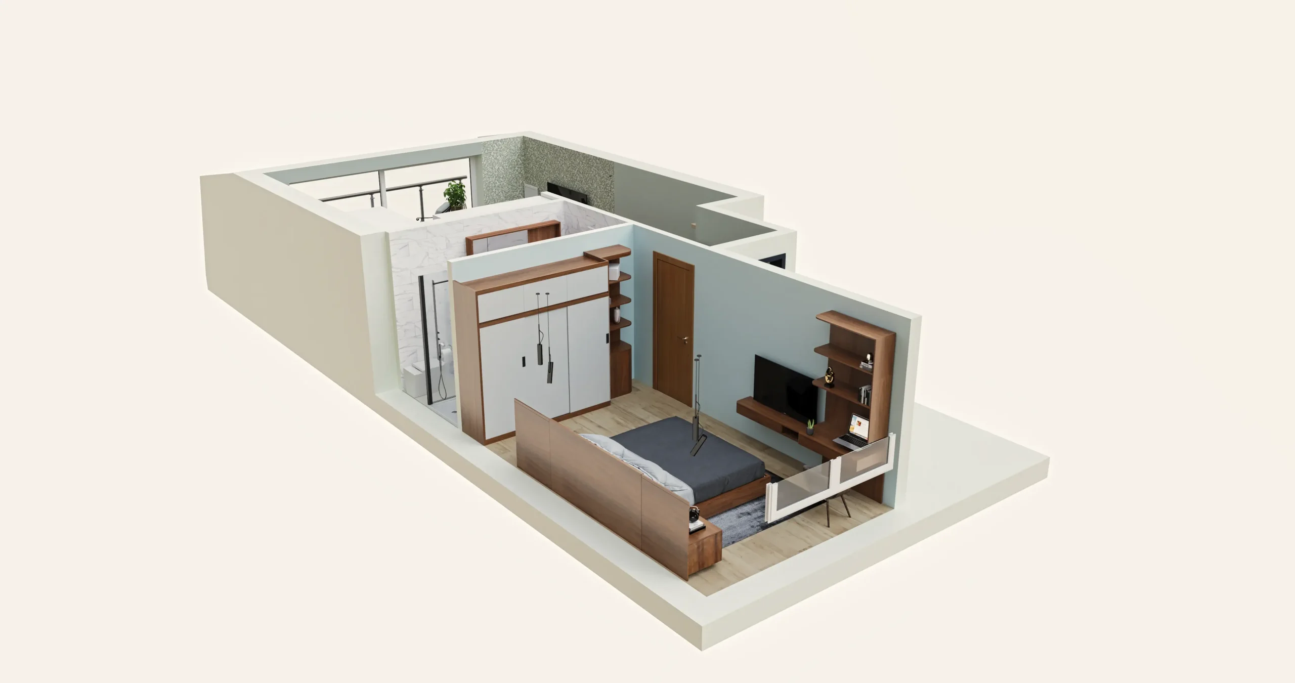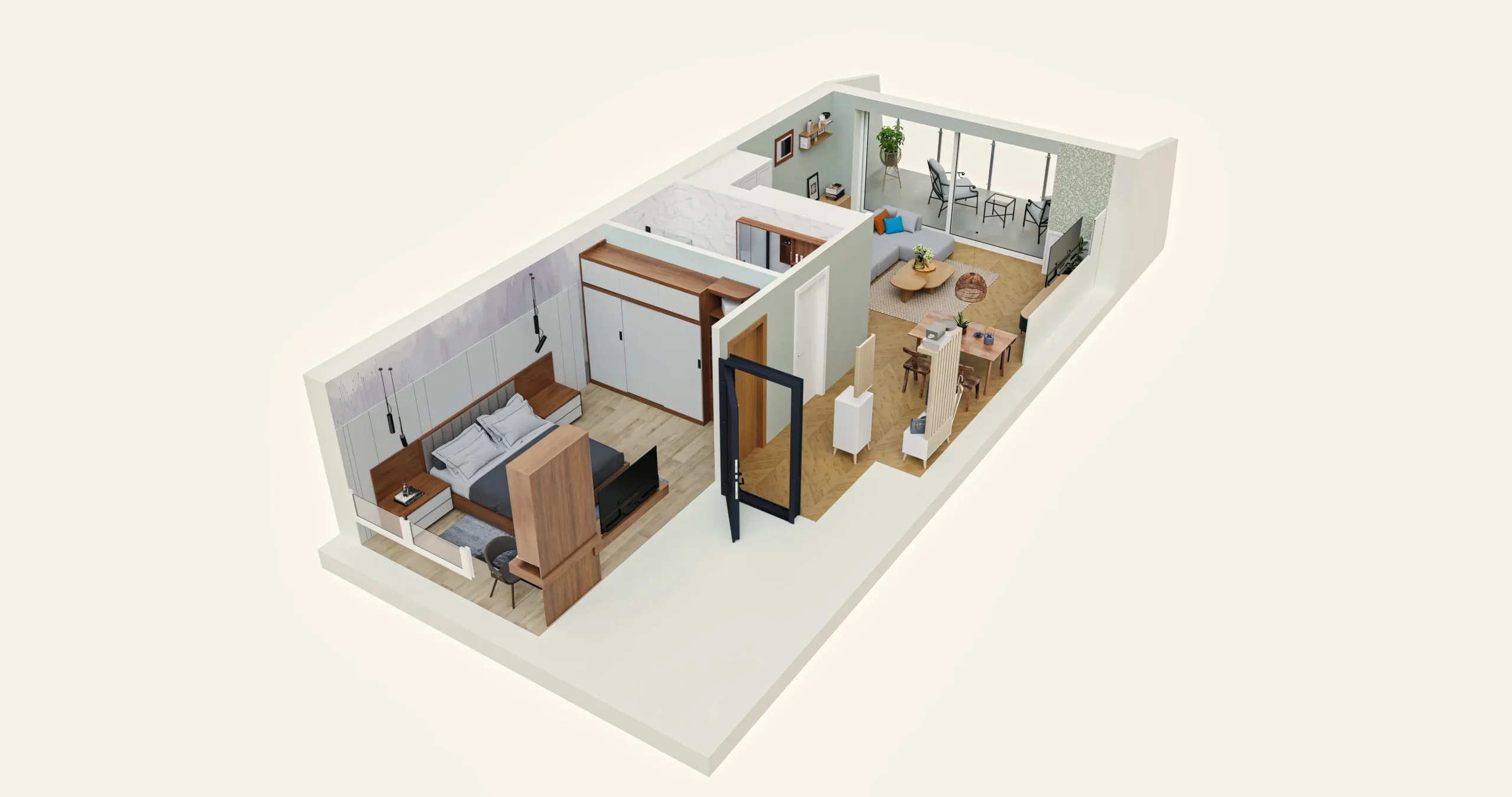 Müasir Minimalist Yataq və Qonaq otağı