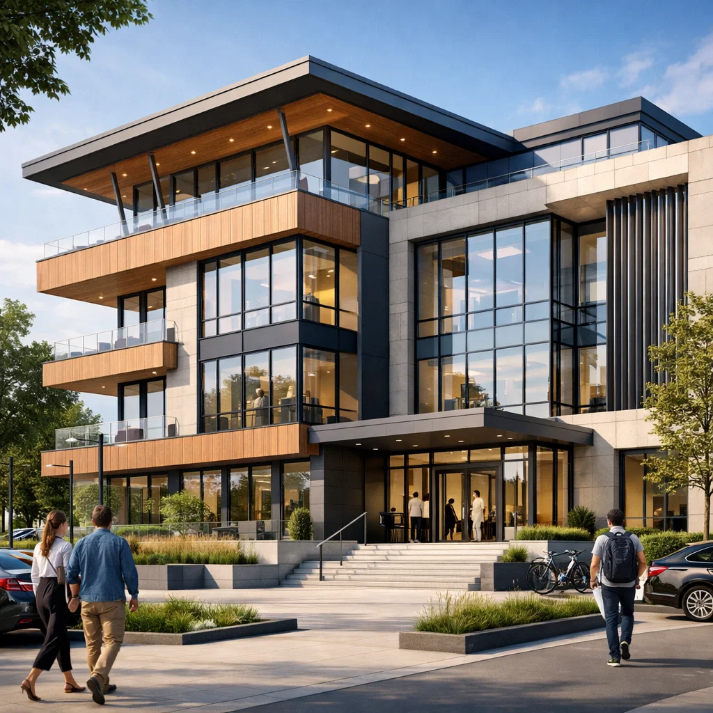 Eksteryer 3D vizuallaşdırması binaların, tikintilərin və xarici məkanların fotorealistik təsvirini yaradan peşəkar xidmətdir. Bu xidmət tikinti başlamazdan əvvəl layihənin real mühitdə necə görünəcəyini tam dəqiqliklə nümayiş etdirir. Binanın fasadı, pəncərələri, qapıları, dam örtüyü, pilləkənlər və bütün konstruktiv elementlərini real materiallarla təsvir edirik Yaşıllıqlar, ağaclar, insanlar, avtomobillər, velosipedlər kimi canlı elementləri əlavə edərək məkana dinamiklik və s. dekorativ elementlər əlavə edirik.
