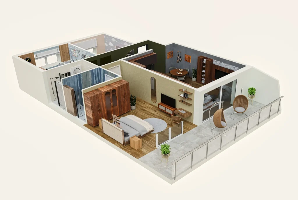 İnteraktiv 3D planlaşdırma mənzil və məkanların daxili quruluşunu üçölçülü perspektivdə əks etdirən innovativ vizuallaşdırmadır. Bu adi 2D planlardan fərqli olaraq məkanın həcmini, otaqların yerləşməsini və ümumi strukturunu vizual olaraq anlaşılan formada , istənilən üst rakursdan təqdim edilirir. Hər otaq, dəhliz, mətbəx və sanitar qovşaqlar real ölçülərdə və düzgün proporsiyalarda modelləşdirilir. Divarların qalınlığı, qapıların açılma istiqaməti və pəncərələrin yerləşməsi dəqiq göstərilir.
